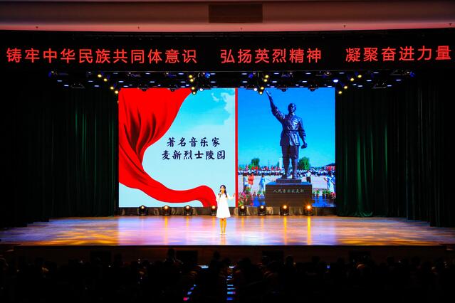 4月28日,由通辽市委退役军人事务工作领导小组办公室、通辽市双拥工作领导小组办公室主办的“铸牢中华民族共同体意识,弘扬英烈精神,凝聚奋进力量”通辽市英烈事迹宣讲会在通辽职业学院举行。市委常委、通辽军分区司令员闫德峰、市政府副市长孙乐、市政协副主席徐宝君及各单位、学校代表共计700余人参加。