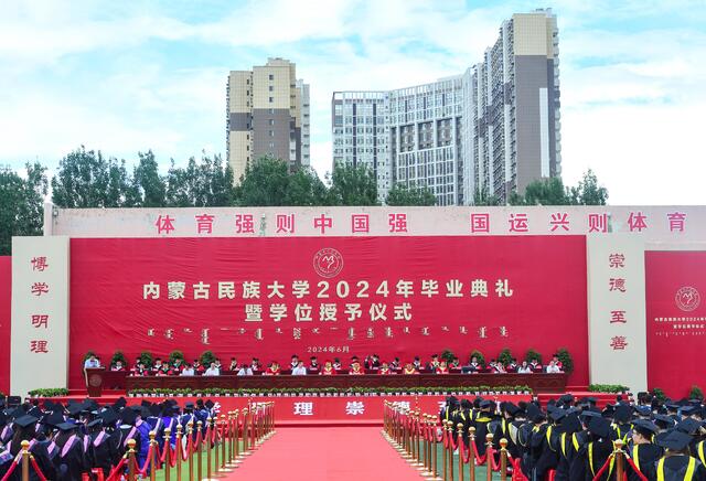 6月24日上午,内蒙古民族大学2024年毕业典礼暨学位授予仪式举行,6127名毕业生顺利完成学业,从内民大启航,踏上新征程。内蒙古民族大学党委书记赵东海,校党委副书记、校长孟祥宏出席。