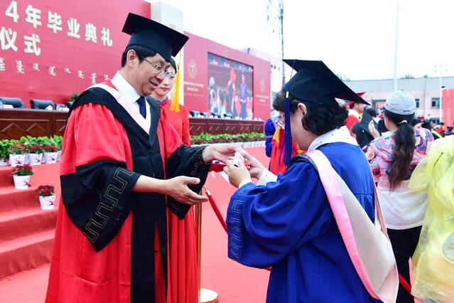 学位授予仪式上,表彰了2024届优秀毕业生、优秀毕业班集体、优秀毕业班主任,校领导、校学位评定委员会委员共同为全体毕业生拨穗正冠,颁发学位证书,并与毕业生合影留念;内蒙古民族大学幼儿园150名小朋友手持柳枝,以稚嫩的童声演唱《送别》《送你一朵小红花》两首歌曲,为毕业生送上祝福,并将手工制作的小红花送给毕业生。