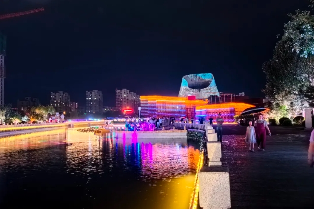 文化是土壤,创意能生金。文化能不能创造更多的价值?通辽给出了答案——“来者已悦 悦者常来”。自文化节开幕以来,悦来河旅游休闲街区成为了市民和游客纷纷打卡的热门,街区集美食品鉴、儿童娱乐、沉浸体验、打卡互动、演绎欣赏5大功能于一体,在璀璨灯光下,文创市集、非遗展示、集装箱小吃商铺等多种业态汇聚于此,丰富的文化和美食体验吸引大家流连忘返,同时街区整体建筑增设灯光亮化效果,沉浸式体验360度5D裸眼投影技术,让前来的市民和游客沉浸其中。