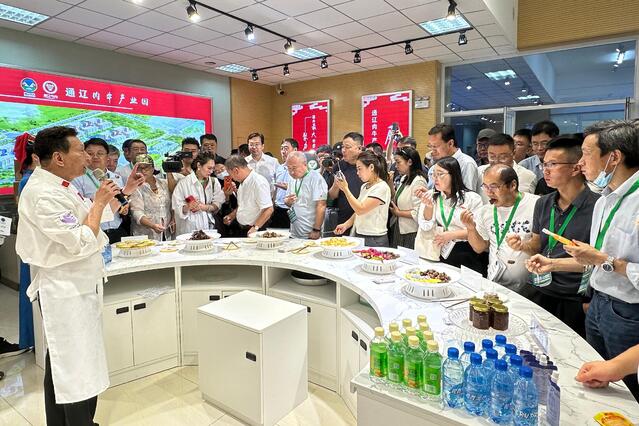 通辽肉牛全产业链观摩中,与会嘉宾们走进科尔沁肉牛种业、京缘种牛繁育、科尔沁牛业屠宰加工基地和智慧万头牧场、科尔沁区牛肉食品加工产业园等,详细了解通辽肉牛育种、屠宰加工、餐饮等全产业链发展情况;