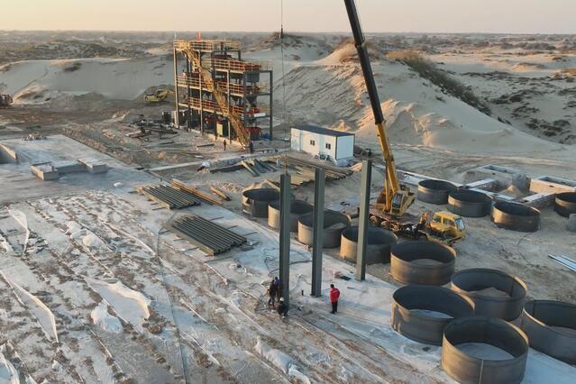 内蒙古胜华新材料有限公司副经理马洪亮告诉记者:“项目总投资3.5亿元,分两期建设,一期主要建设年产50万吨油田用硅砂系列产品生产线及配套设施,二期主要建设年产30万吨油田用硅砂、年产10万吨采油防砂填充剂、年产10万吨抗高温树脂覆膜砂系列产品生产线及配套设施。项目全部建成投产后,可实现年销售收入2.5亿元,年纳税2900万元。项目是今年6月开始施工,预计11月试生产。工人们每天加班加点为的是争取早日投产。”